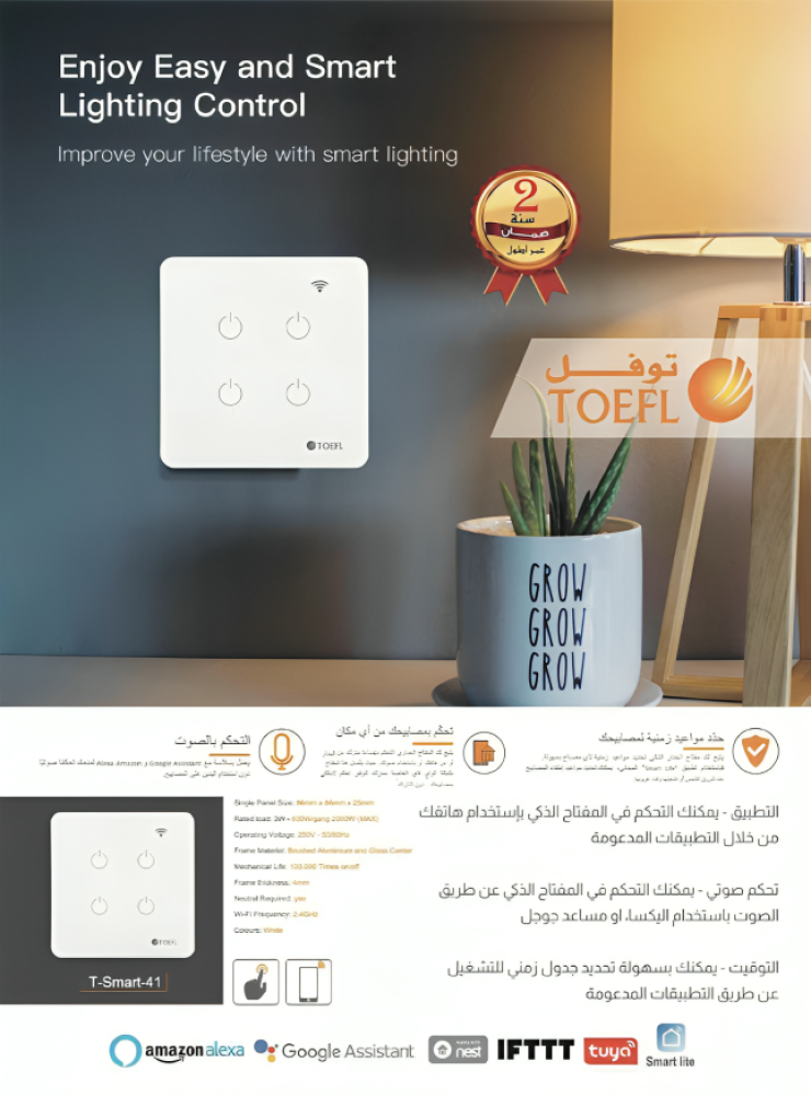 استمتع بتحكم ذكي وسهل مع هذا المفتاح المفرد الذي يعمل بتقنية WiFi. يتميز بتصميمه الأنيق وسهولة استخدامه عبر الهاتف المحمول، ويتيح لك التحكم في الإضاءة من أي مكان. المفتاح متوافق مع أنظمة المنزل الذكي مثل أليكسا وجوجل هوم، مما يجعله خيارًا مثاليًا لتحديث منزلك. يأتي بلون أبيض وبتصميم غاطس في الحائط، مما يضمن تناسقًا مع ديكور منزلك. مع ضمان لمدة سنتين، يمكنك الاعتماد عليه لتوفير تجربة استخدام مريحة وآمنة.