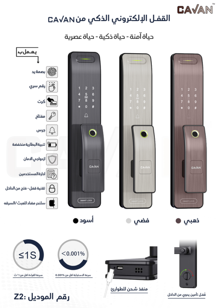 ارتقِ بأمان وأناقة بابك مع مقبض الكتروني ذكي CAVAN Z2 من مقبض — خيار يجمع بين التكنولوجيا الحديثة والتصميم العصري ليكمل لمسات مقبض متقن في كل تفاصيل تشطيبك.