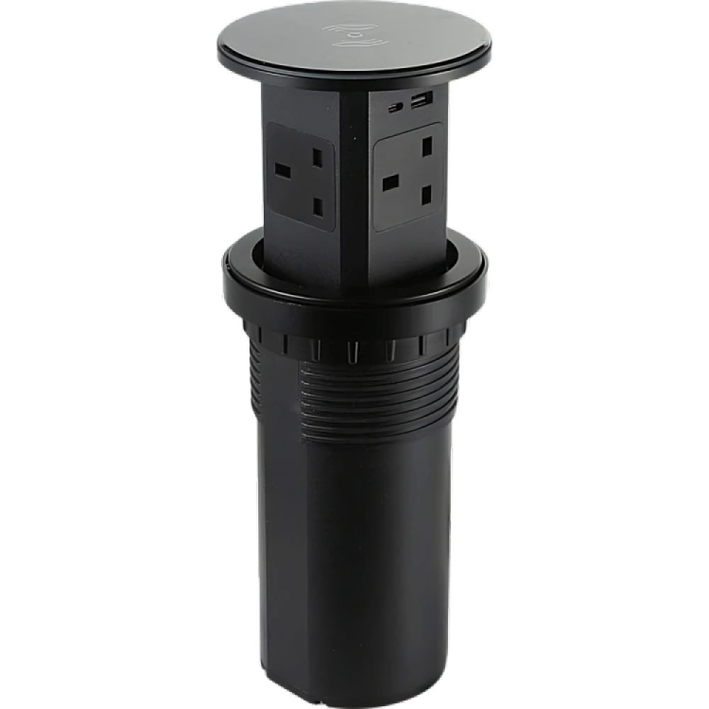 هذا الفيش المكتبي الرباعي يجمع بين الأناقة والوظائف المتعددة. يأتي مع منافذ USB وType-C،